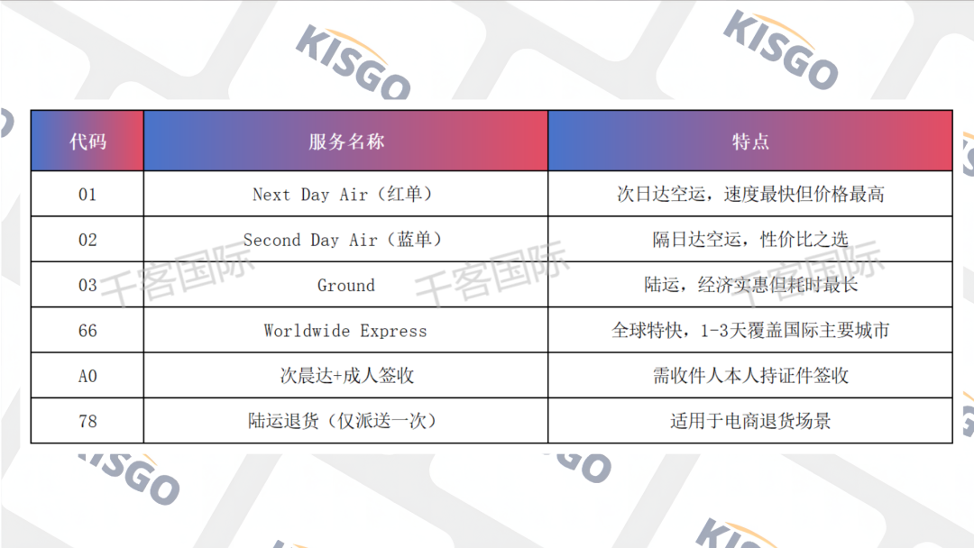 这里展示的是服务信息,展示特定的服务,如图所示,为UPS Ground(陆运)服务,常见的服务还有AIR、Express。