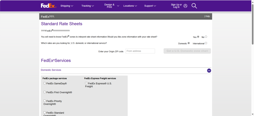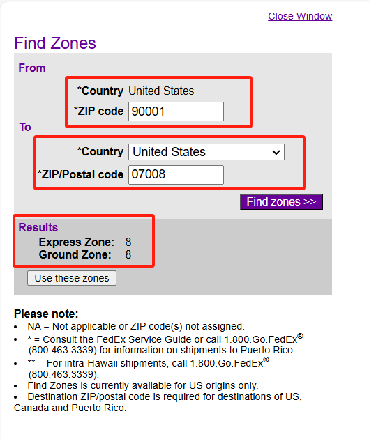 FedEx官网有一个工具网址,可以直接输入始发地和目的地邮编直接计算出分区。